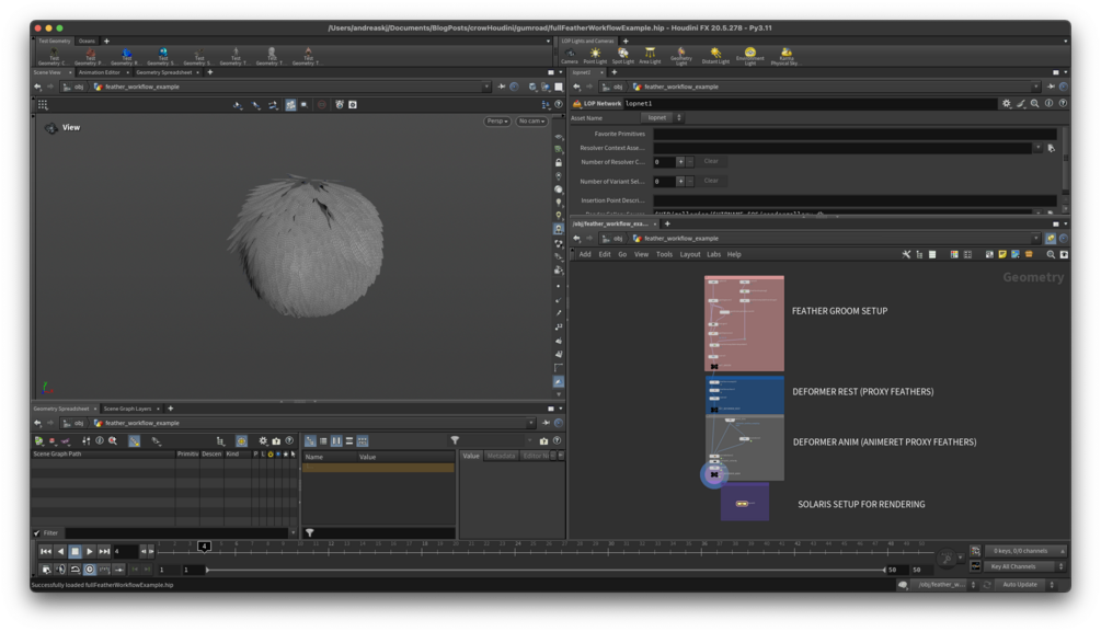 - Simple example Houdini scene showing the entire feather workflow with animation